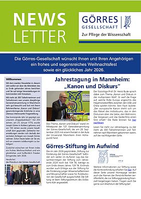 Die 128. Generalversammlung findet vom 25. bis 27. September 2026 in Koblenz mit dem Rahmenthema „Wissenschaft und Öffentlichkeit“ statt. In 2026 feiern wir 250 Jahre Joseph v. Görres und 150 Jahre Görres-Gesellschaft.