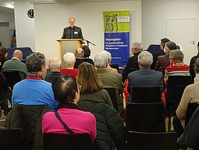 Doch auch des Jubilares selbst, Joseph Görres, wurde gedacht. Prof. Dr. Patrick Peters, der im vergangenen Jahr eine neue Görres-Biographie „Mit spitzer Feder für die Freiheit“ (hier) vorgelegt hat, entwarf für die mehr als 200 Zuhörerinnen und Zuhörer ein Lebensbild Görres‘ (Rede hier abrufbar). Görres-Generalsekretär Dr. Martin Barth betonte in seiner Ansprache (hier abrufbar), dass die Görres-Gesellschaft sich in der Tradition Görres‘ sieht und seine Kernideen - Freiheit, Europa und Christlicher Wertehorizont - in ihrer Programmatik umsetzt. Dr. Barth lud die Anwesenden zur Teilnahme an der 127. Jahrestagung der Görres-Gesellschaft in Koblenz ein, die vom 25. Bis zum 27. September 2026 stattfinden wird und die unter dem Rahmenthema „Wissenschaft und Öffentlichkeit“ steht.