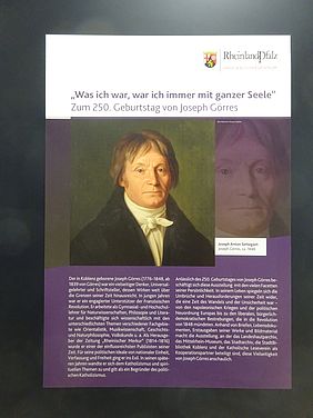Am Montag Abend wurde darüber hinaus eine Görres-Ausstellung mit dem Titel "Was ich war, war ich immer mit ganzer Seele" im Landesbibliothekszentrum eröffnet. Anhand von Briefen, Lebensdokumenten, Erstausgaben seiner Werke und Bildmaterial macht die Ausstellung die Vielseitigkeit Joseph Görres' anschaulich. Bemerkenswert war, dass das Mittelrhein-Museum an diesem Abend das berühmte Settegast-Gemälde von Joseph Görres zur Ausstellungseröffnung mitbrachte und ausstellte.