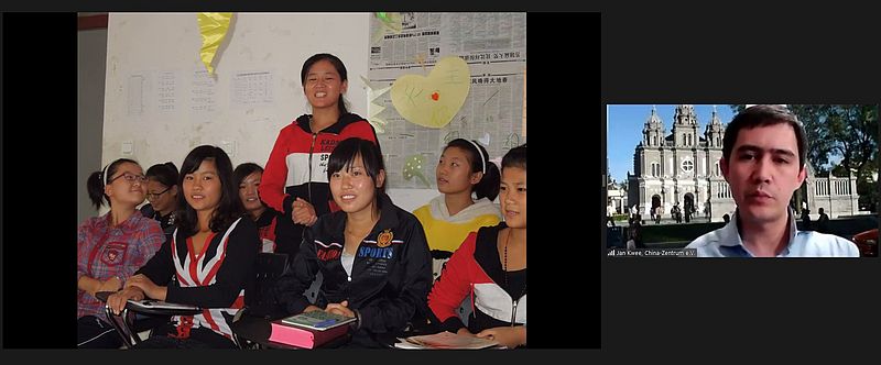 In einem eindruckvollen Webinar berichteten am Donnerstag, dem 2. Dezember 2021, Frau PD Dr. Esther-Maria Guggenmos, Referatsleiterin Asien beim Katholischen Akademischen Ausländer-Dienst (KAAD) und Jan Kwee M.A. vom China-Zentrum e.V. in Sankt Augustin über die Religionspolitik in China und die Situation der Katholischen Kirche. Das Webinar stand unter dem Titel "Alles Seidenstrasse oder was? Religionspolitik im heutigen China".