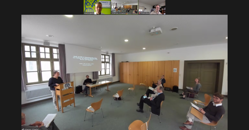 Bereits am Freitag Abend fand um 17:30 Uhr ein virtuelles Treffen des Präsidiums mit Nachwuchswissenschaftlerinnen und Nachwuchswissenschaftlern statt, in dessen Verlauf Görres-Präsident Professor Dr. Bernd Engler den Vertretern des Jungen Forums der Görres-Gesellschaft dafür dankte, dass sie sich engagiert in die wissenschaftlichen Diskussionen der Görres-Gesellschaft einbringen. Das Junge Forum dokumentiert, so Engler, dass die Görres-Gesellschaft den wissenschaftlichen Interessen der nächsten Generation einen weiten Raum gibt. Er lud die Nachwuchswissenschaftlerinnen und -wissenschaftler dazu ein, ihre wissenschaftlichen Interessen weiter prononciert zu artikulieren, beispielsweise in der Formulieriung von Rahmenthemen künftiger Generalversammlungen.