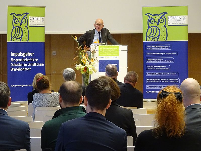 Der Präsident der Görres-Gesellschaft, Professor Dr. Bernd Engler, sagte zum Thema der Tagung im Vorfeld: „Mit dem Thema „Kanon und Diskurs“ adressiert die Görres-Gesellschaft ein Thema, das zunächst im binnenwissenschaftlichen Diskurs von großer Relevanz ist, letztlich aber wissenschaftsgeschichtlich eine bedeutende Rolle spielt, da Wissenschaft immer auch von der wechselnden Kanonisierung bestimmter Theorien und als jeweils gültiger „Standard“ definierter Werke oder Personen bestimmt ist. Gibt es aber angesichts einer zunehmenden Unübersichtlichkeit wissenschaftlicher Disziplinen überhaupt noch Standardwerke oder bedeutende Wissenschaftlerinnen und Wissenschaftler, auf die sich die Disziplinen als maßgeblich für ihr Fach einigen können? Was bedeutet es für die Wissenschaft, wenn eine Kanonbildung ausbleibt oder unmöglich gemacht wird? Gefährdet dies nicht letztlich die Diskursfähigkeit von Wissenschaft, wenn sie ihre eigenen Grundlagen gar grundsätzlich in Frage stellt? Im Hinblick auf die gesellschaftliche Relevanz von Wissenschaft stellt sich damit aber auch eine viel weitergehende Frage: Was bedeutet es für gesellschaftliche Debatten, wenn Ihre Diskursräume immer weiter verengt werden? Geht damit nicht wissenschaftliche – und in Konsequenz gesellschaftliche – Orientierung verloren?“