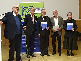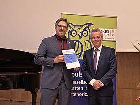 Zum Abschluss des Festaktes standen Ehrungen an. Zunächst nahm Görres-Generalsekretär Dr. Martin Barth, die Prämierung der beiden Erstplatzierten beim Essay- und Kreativwettbewerb, Herrn Lennart Luhmann (2. Platz) und Herrn Sebastian Heimann (1. Platz), vor (über den Preis, die Preisträger und ihre Arbeiten lesen Sie hier mehr). Zum Abschluss des Festaktes ehrte Görres-Präsident Prof. Dr. Bernd Engler Mitglieder für ihre langjährige Mitgliedschaft.
