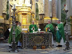 Die Görres-Gesellschaft setzte ihre Tagung am Samstag mit einem bewegenden morgendlichen Requiem für ihre verstorbenen Mitglieder in der Jesuitenkirche fort, ehe das wissenschaftliche Tagungsgeschehen wieder in den Fokus rückte. Dabei standen die wissenschaftlichen Vorträge im Vordergrund, viel Raum wurde jedoch auch für persönliche Begegnungen und Gespräche, Fachdiskussionen und Besuche der Buchstände der Verlagspartner der Görres-Gesellschaft gegeben.