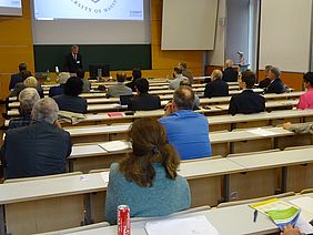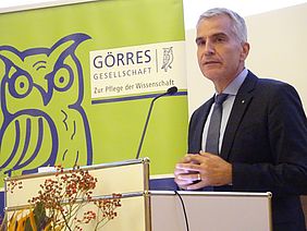 Den Auftakt der Tagung bildete am Freitag die Eröffnungsveranstaltung in der Aula der Universität, wo die Görres-Gesellschaft auf Einladung von Uni-Rektor Prof. Dr. Thomas Fetzer zum vierten Mal in ihrer Geschichte tagte. In seinen Grußworten hob Rektor Fetzer u.a. die Geschichte der Universität Mannheim und ihre Schwerpunkte u.a. in den Wirtschaftswissenschaften hervor. Görres-Präsident Prof. Dr. Bernd Engler dankte für die erneute Bereitschaft der Universität, die Görres-Gesellschaft zu beherbergen.