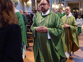 Dem Festakt vorausgegangen war ein Gottesdienst in der Mannheimer Jesuitenkirche, den Weihbischof DDr. Christian Würtz (Freiburg) feierte. Er betonte, dass das Thema der Görres-Jahrestagung auch die Theologie herausfordere: „Was gehört zum Kanon, was ist Maßstab, Richtschnur, unveränderliches Dogma? Wie gelingt es uns darüber innerhalb der Theologie zu einem fruchtbaren Dialog zu kommen? Und wie gelingt es uns, auch in die Gesellschaft, außerhalb des kirchlichen Binnenraums in einen Diskurs zu kommen über die Fragen der Religion und unseres Glaubens?“, so Weihbischof Würtz. Er fügte hinzu: „Weder der Diskurs noch der Kanon können den ganzen Raum der Wirklichkeit füllen. Es braucht beides, die Tiefe und die Weite, die sich gegenseitig ergänzen und befruchten, um so zur Fülle, zur Gänze zu kommen.“ (zum Predigtext kommen Sie hier).