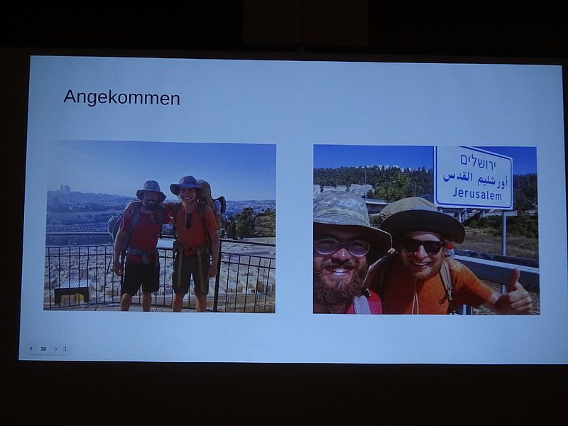Am abschließenden Mittwoch, dem 11. März, stand zunächst die Politik im Zentrum des Interesses. Die Gruppe war von Frau Tanja Schorer-Dremel, MdL, stellvertretende Generalsekretärin der CSU und stellvertretende Fraktionsvorsitzende der CSU-Fraktion im Bayerischen Landtag, zu einem rund einstündigen Gespräch in den Bayerischen Landtag eingeladen worden. In diesem Gespräch wurden eine Reihe landes- und bundespolitischer Themen adressiert, die den Teilnehmerinnen und Teilnehmern einen guten Eindruck von den Herausforderungen gab, vor denen Bayern und Deutschland stehen, aber auch davon, wie der Freistaat Bayern diese angeht und meistert. Im Anschluss an das Gespräch wohnte die Gruppe einer Sitzung des Bayerischen Landtages bei und wurde so Zeuge von der Lebendigkeit des Parlamentarismus. Am Nachmittag folgte mit dem Besuch der Israelitischen Kultusgemeinde München und Oberbayern ein sehr intensiver und berührender Programmpunkt. Frau Ellen Presser, Leiterin des Kulturzentrums der IKG, gab einen umfassenden Überblick über die Geschichte der Gemeinde, den Bau des Zentrums sowie dessen reichem kulturellen und religiösen Leben. Besonders berührend war für die Teilnehmer der „Gang der Erinnerung“, an dessen Wänden die Namen durch den Nationalsozialismus ermordeten Münchener Jüdinnen und Juden zu lesen sind. Seinen Abschluss fand dieser Tag und die Studienreise insgesamt mit dem Vortrag der beiden Studenten Dennis Ossipov und Sebastian Fritsch im Schloss Suresnes am Abend. Die Veranstaltung fand auf Einladung der Katholischen Akademie in Bayern statt und wurde von Frau Dr. Astrid Schilling betreut. Ossipov, ein jüdischer Student, und Fritsch, ein evangelischer Student, waren gemeinsam von April bis August 2024 zu Fuß von München nach Jerusalem gepilgert, 4.000 Kilometer weit. Über ihre Erlebnisse von Gastfreundschaft, interkulturellen Begegnungen, bis hin zu spirituellen Erfahrungen berichteten sie höchst authentisch und eindrucksvoll. Herzlich sei der Katholischen Akademie und Astrid Schilling für eine wieder einmal wundervolle Zusammenarbeit und die Einladung für diesen Abend gedankt! Was für ein großartiger Abschluss einer wundervollen Studienreise!