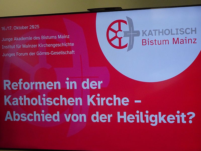 An einer Kooperationsveranstaltung zwischen dem Jungen Forum der Görres-Gesellschaft und der Jungen Akademie des Bistums Mainz nahmen am 16. und 17. Oktober 2025 Vertreterinnen und Vertreter des Jungen Forums teil und stellten ihre wissenschaftliche Kompetenz mit einer Reihe hochkarätiger Vorträge unter Beweis. Die Abschlusstatements der Teilnehmerinnen und Teilnehmer im Film sehen Sie hier. Im Tagungszentrum Erbacher Hof in Mainz lautete das Thema der Tagung: "Reformen in der Kirche – Abschied von der „Heiligkeit"?" Den Flyer zur Veranstaltung finden Sie hier.